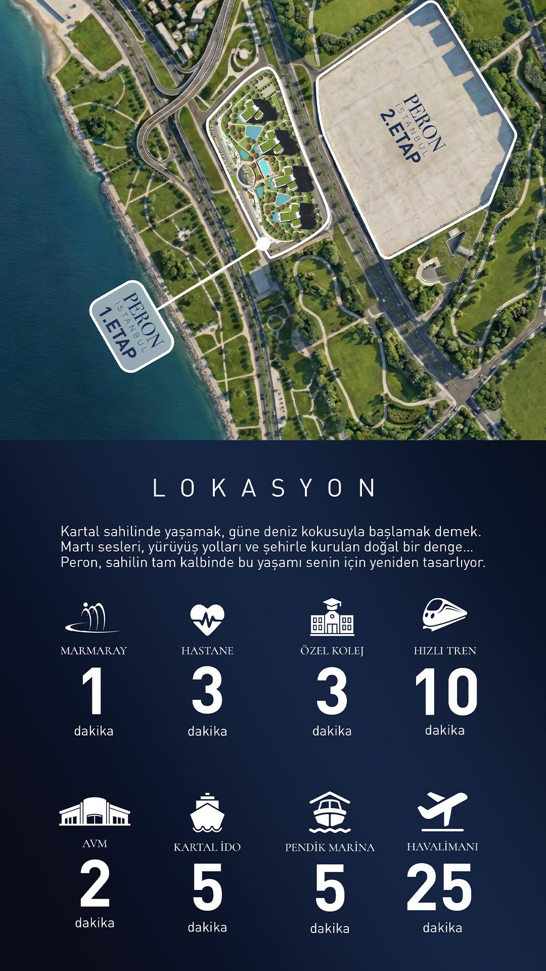 Peron İstanbul, Marmaray'a birkaç adımda ulaşabildiğiniz ayrıcalıklı bir konum sunar. İşe, okula ve şehrin öne çıkan noktalarına trafiksiz, hızlı ve konforlu erişim sağlarken; havalimanına yalnızca 20 dakikalık mesafesiyle hayatınıza zaman kazandırır.